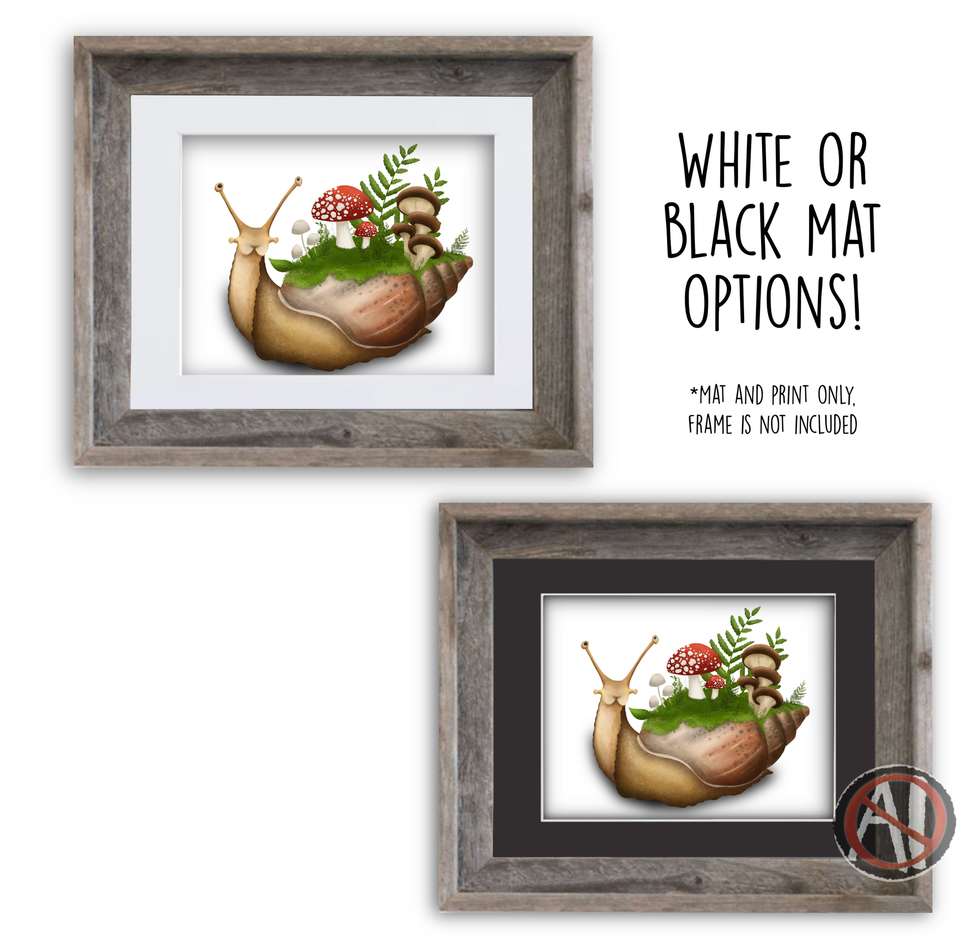 The mats are beveled cut with white core and 4-ply thick (about 1.4 mm or 1/16 inch), The backing is white on both side. Each Print will be packed ready to frame and in a clear plastic sleeve for protection.